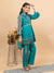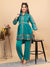 Step into elegance with this beautifully designed teal kurta set. Crafted from breathable cotton, this outfit combines comfort with traditional charm. The kurta features intricate printed detailing on the sleeves and borders, along with pleated design at the front for a stylish touch. Paired with straight pants adorned with matching prints, this set is perfect for festive gatherings, office wear, or casual outings.