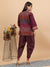 Stylish Wine Cotton Silk Dhoti Pant Set with Embroidered Crop Top & Ja– Kidar Textile Mills